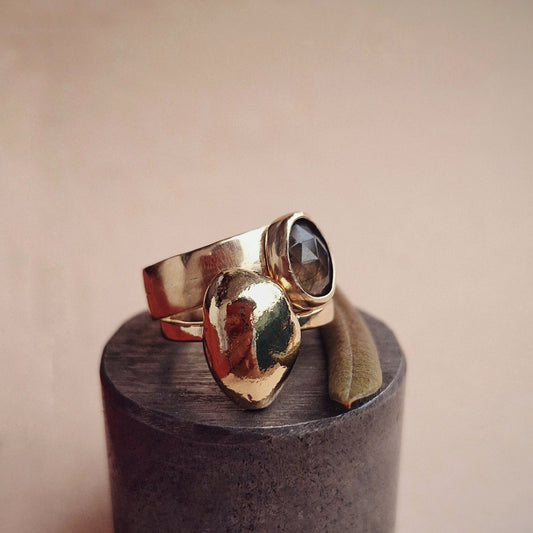 Obje strane zime: mračnija vs. svjetlija, mraz i magla vs. zubato sunce, zlica i dobrica. Svoju stranu pronađite u patini srebra ili toplini mjedi - obje su praćene mat finishom i izraženim teksturama te odabranim kristalima. Odaberite komad u svojoj veličini i za prst(en) više uživajte u prosincu, prenoseći uspomene na njega i u sljedeće godine.