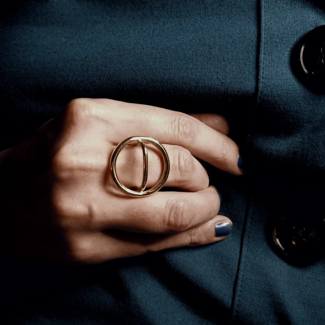 Nosite odnos oblika u istodobno laganom i snažnom prstenu: jedna linija prelazi preko druge poput nebeskog tijela koje nakratko zaklanja svjetlost.