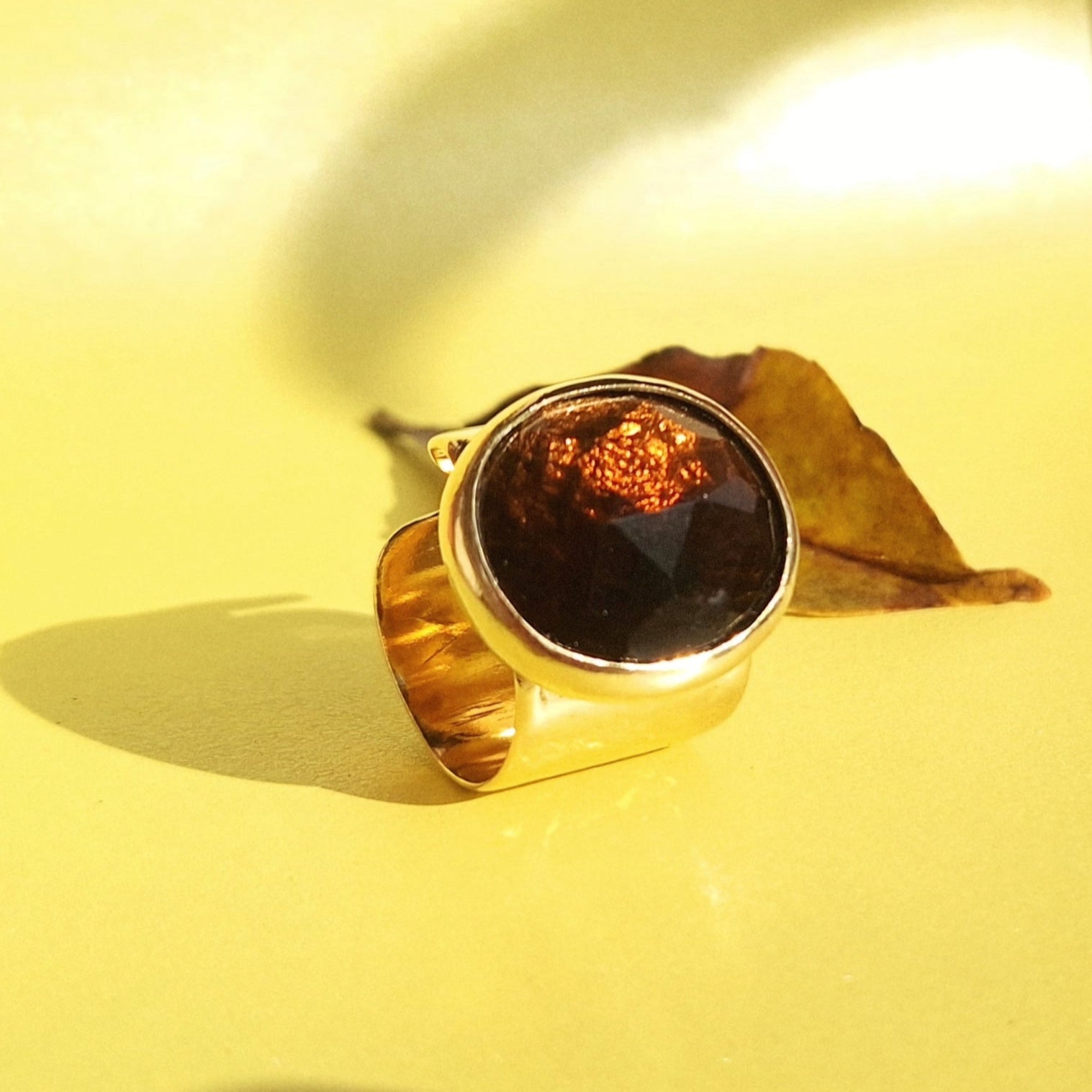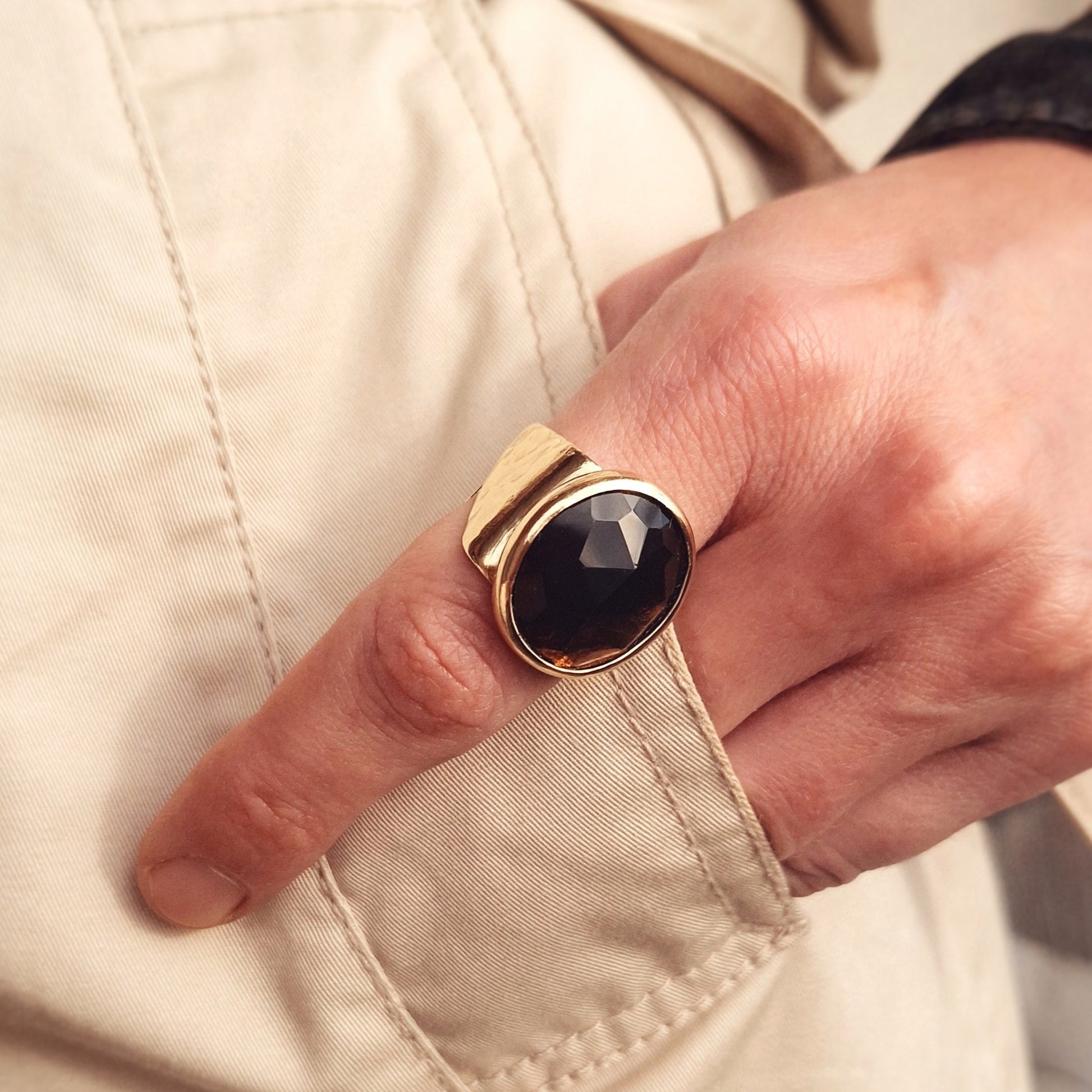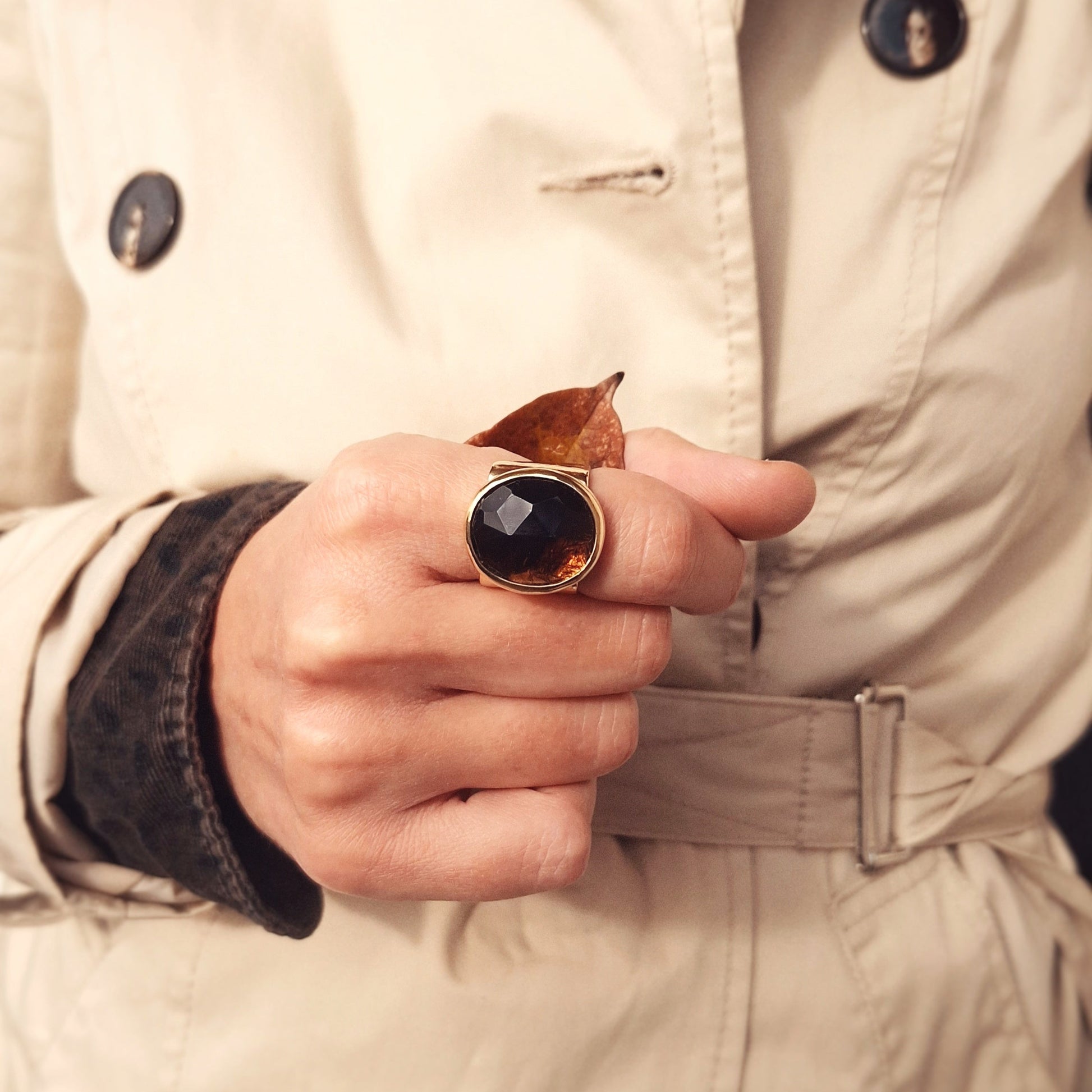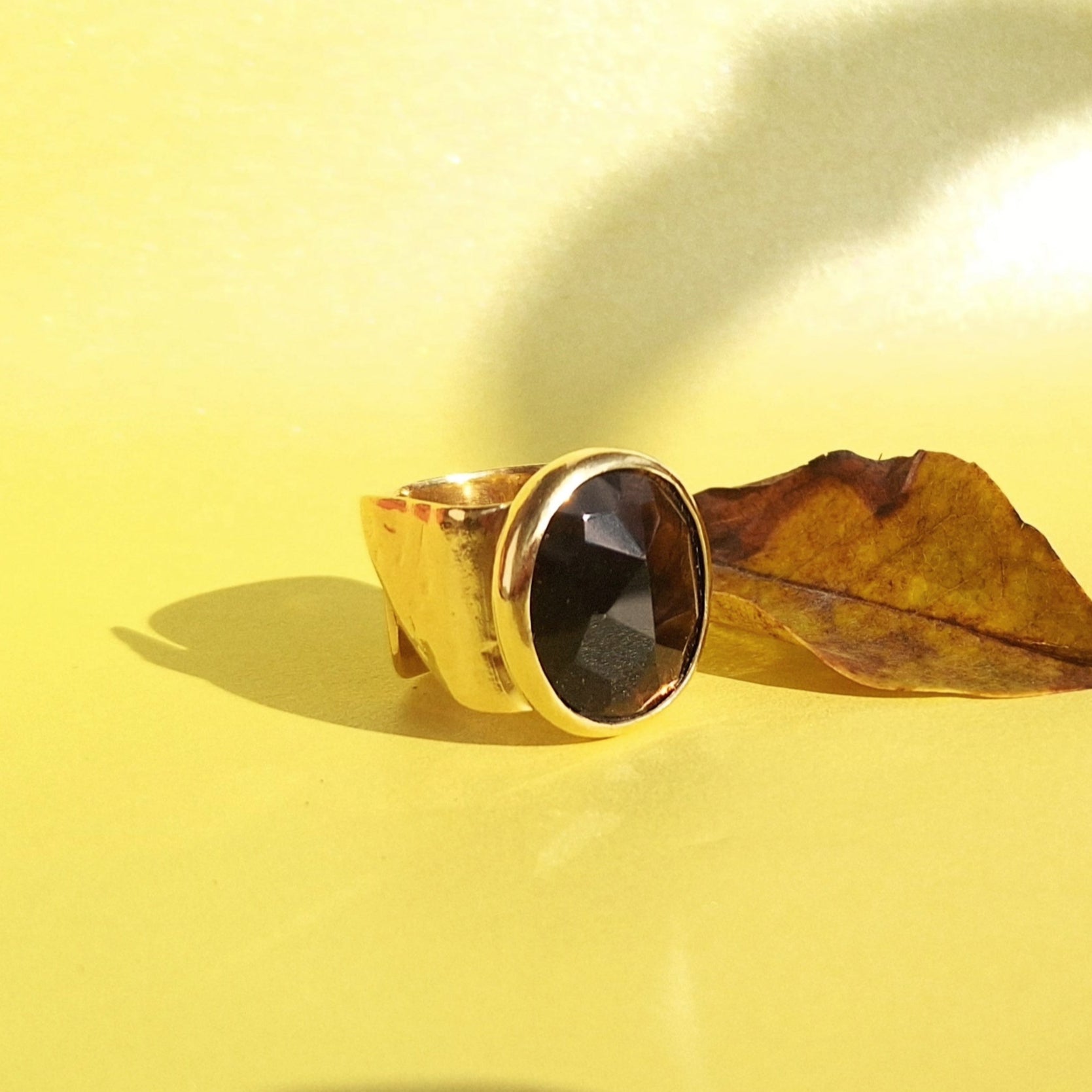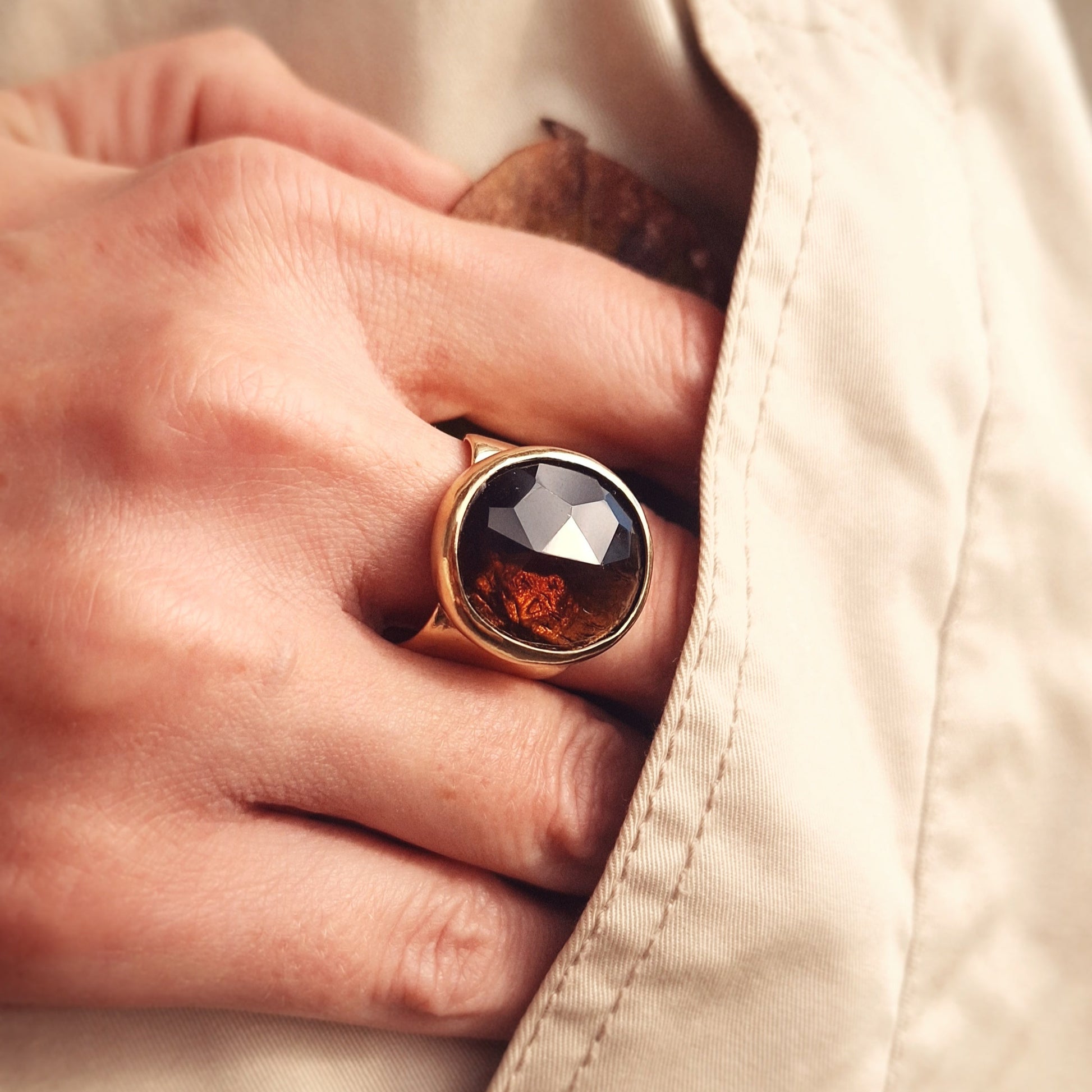 Neka kovana mjed svojim zlaćanim tonovima i teksturama te veliki smokey kvarc budu detalji koji privlače pogled vas koji će ga nositi, ali i onih koji će ga na vama samo gledati.