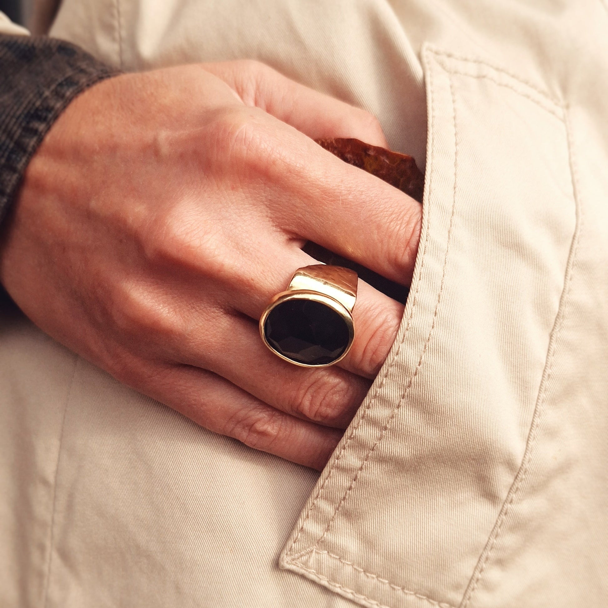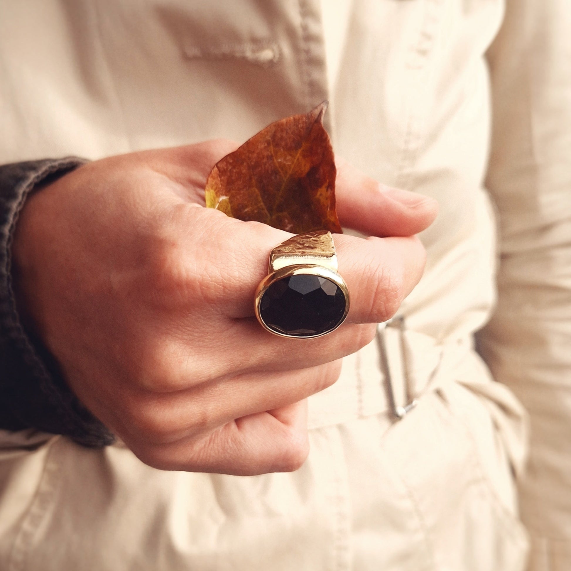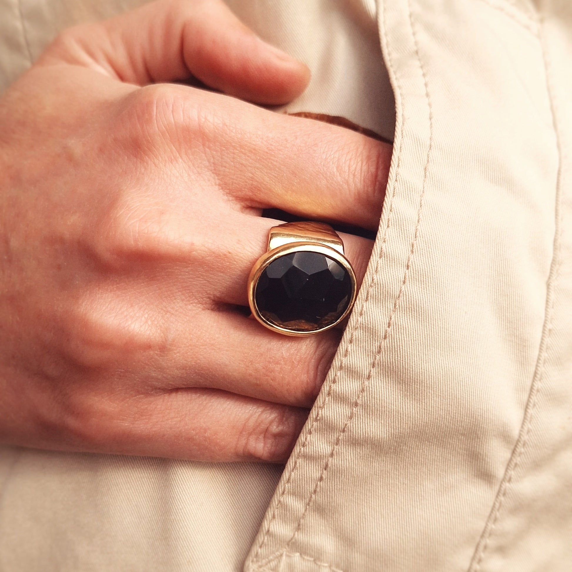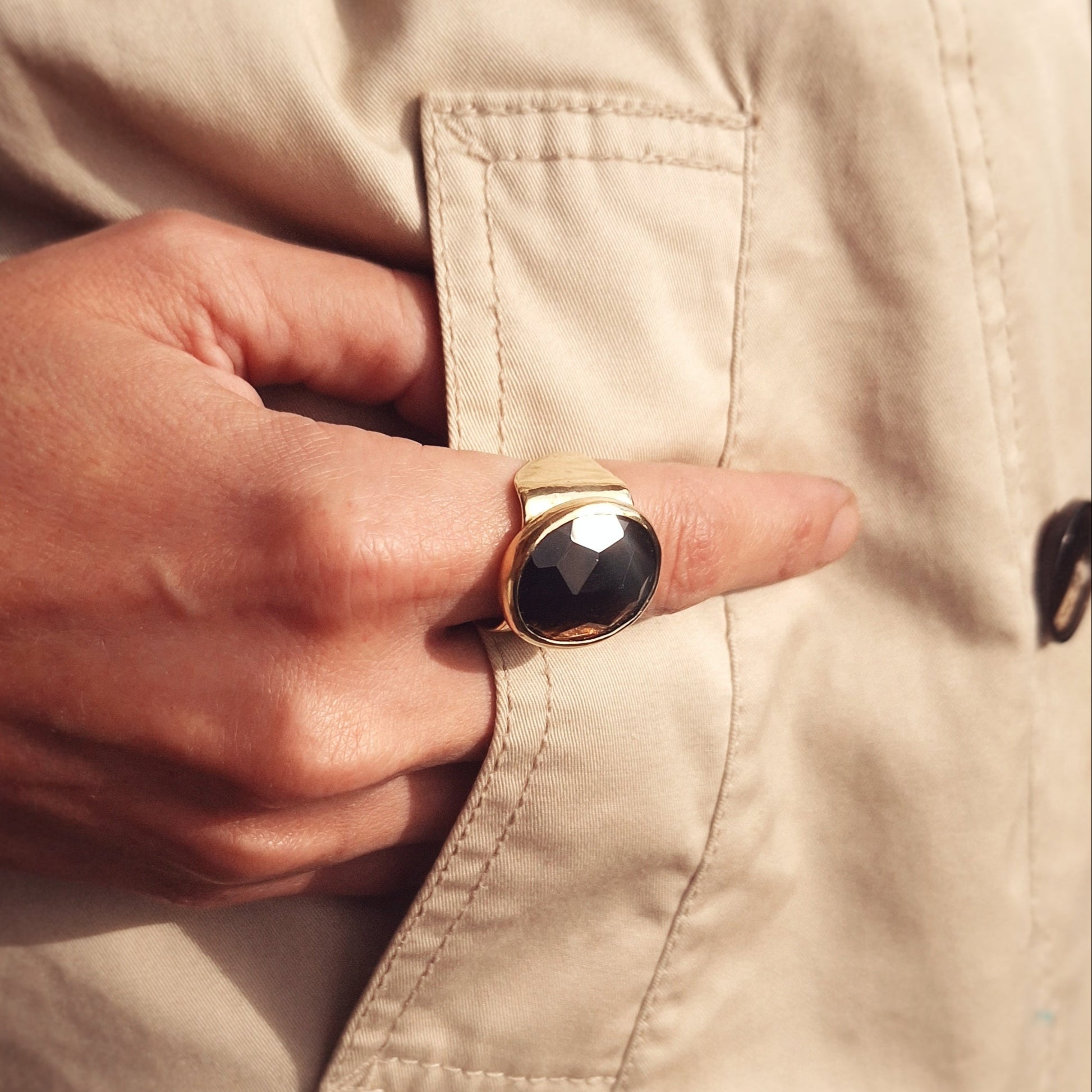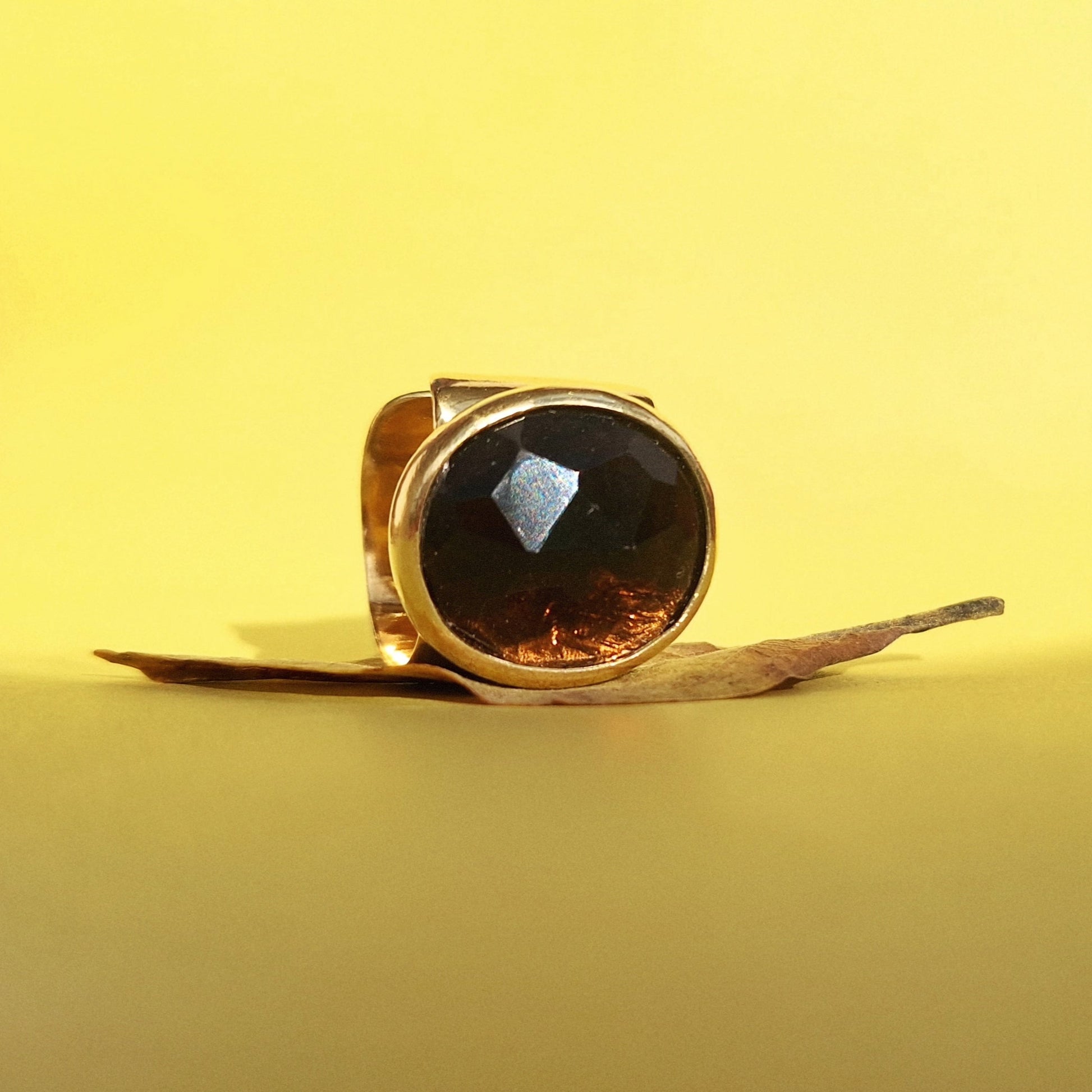 Neka kovana mjed svojim zlaćanim tonovima i teksturama te veliki smokey kvarc budu detalji koji privlače pogled vas koji će ga nositi, ali i onih koji će ga na vama samo gledati.